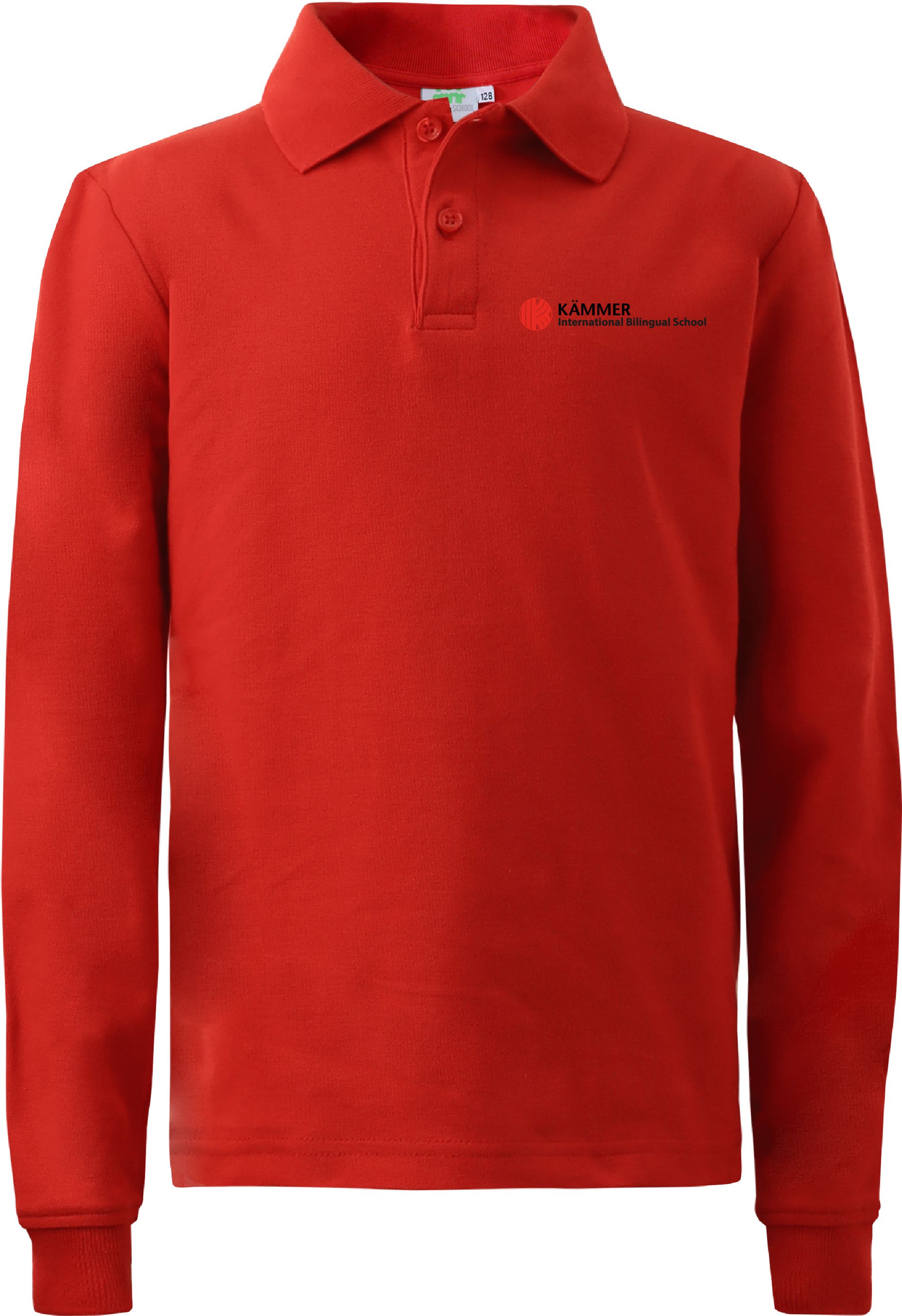 Polohemd, langarm, Unisex, mit gesticktem Schullogo,